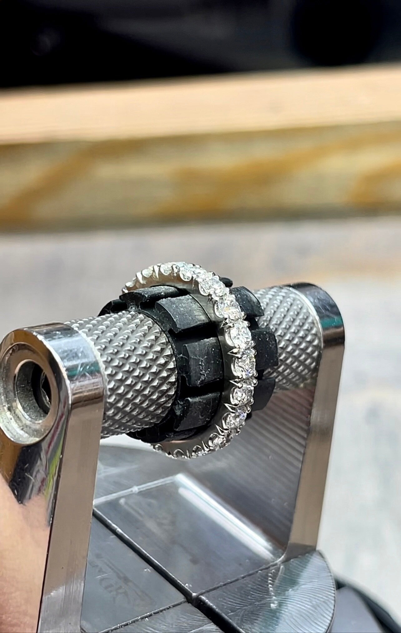 A secure and elegant way to showcase a row of diamonds.